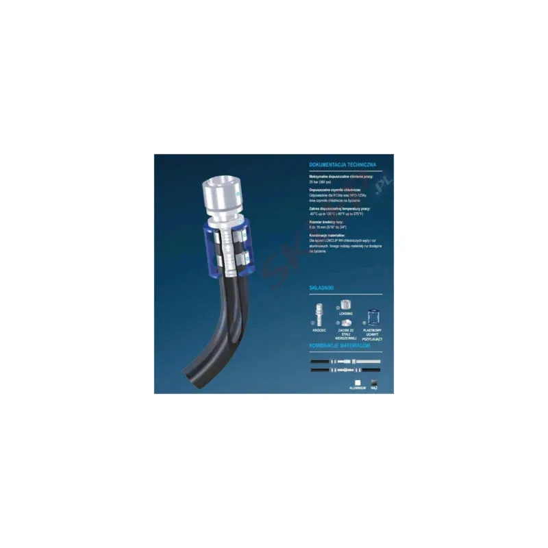 Złączka LOKCLIP Al 16-10. Do połączenia przewodu gumowego cienkościennego 10 z rurką aluminiową.