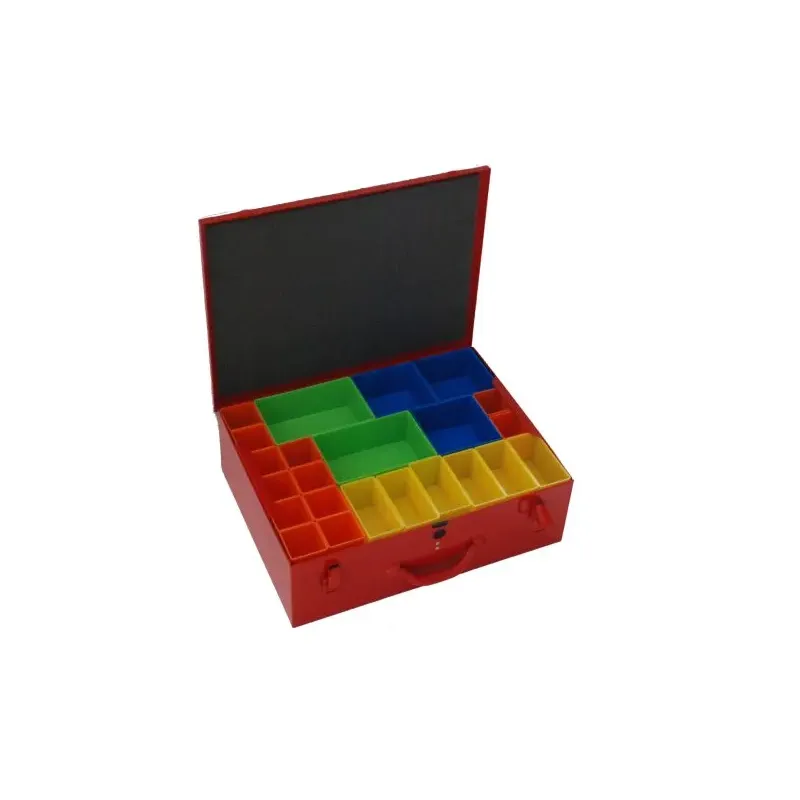 Solidna, metalowa walizka z przegródkami na narzędzia i małe elementy (jak np. złączki)
