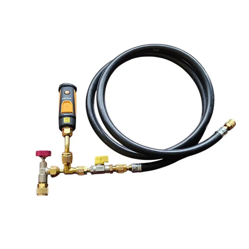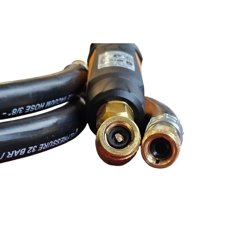 • Przewód do próżni 1/4″ SAE – specjalny wąż z gumową uszczelką i powiększoną średnicą wewnętrzną, zapewniający szybki przepływ i lepszą wydajność niż standardowe przewody serwisowe.