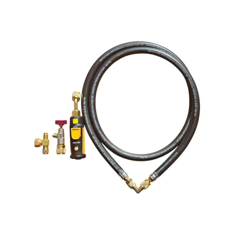 Wysokiej jakości zestaw akcesoriów renomowanych marek REFCO (Szwajcaria) i TESTO (Niemcy), stworzony z myślą o precyzyjnym i bezpiecznym wykonywaniu procesu próżniowania w instalacjach chłodniczych i klimatyzacyjnych.